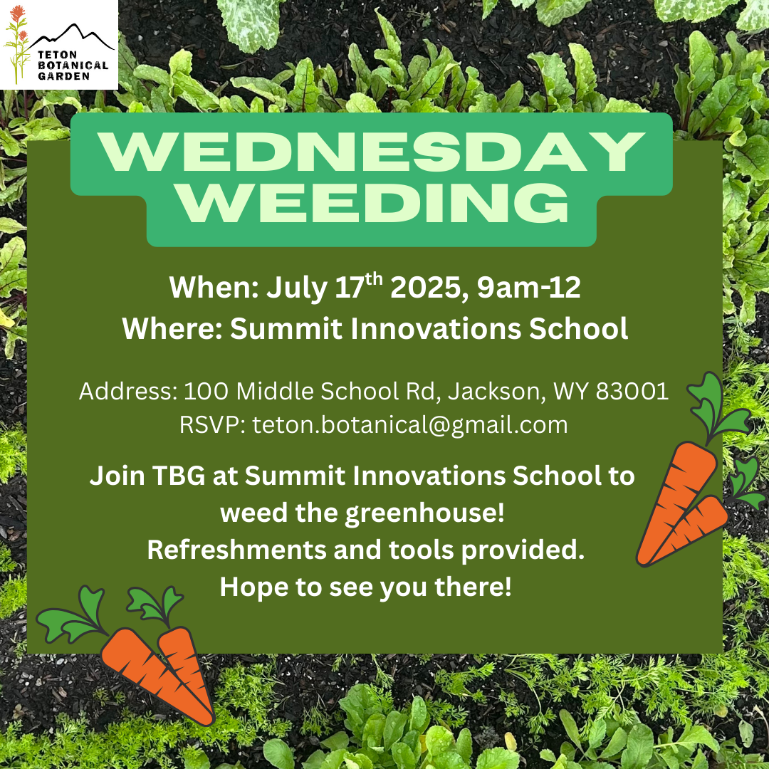 Join TBG at Summit Innovations School to weed the greenhouse! 9am-12 on July 17th, 2025. Refreshments and tools provided. Hope to see you there!